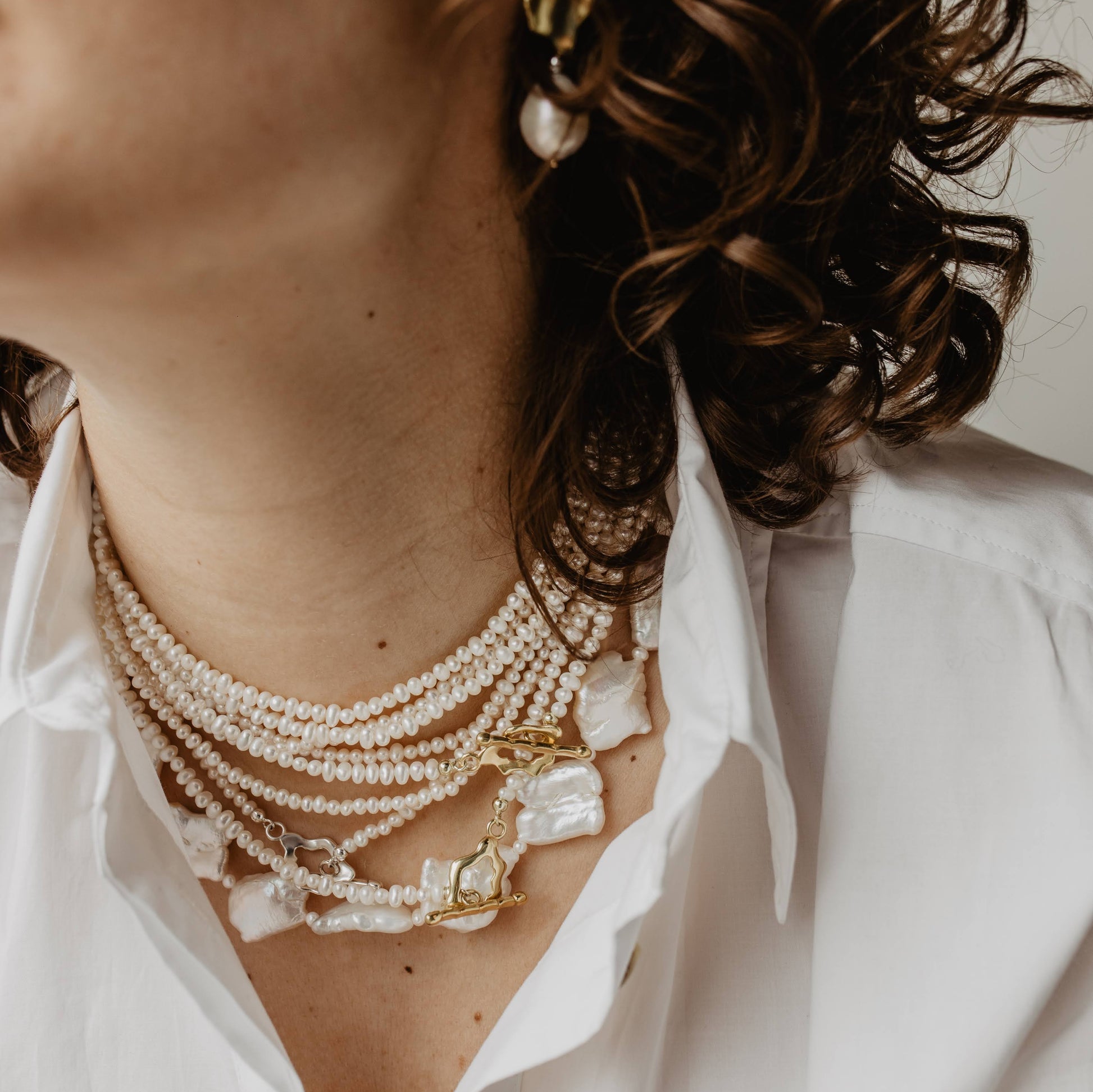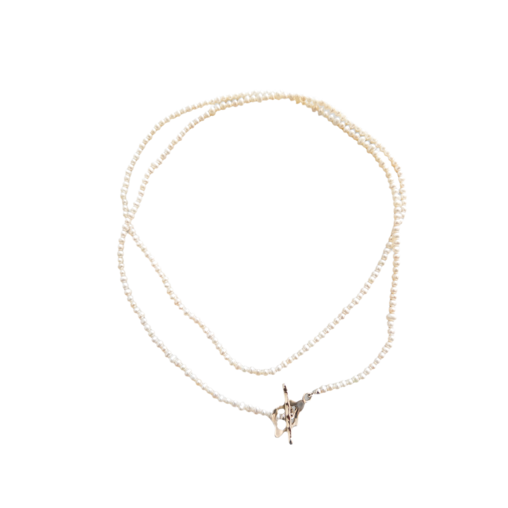 Dubbele Parelketting met Zilveren organische vorm sluiting