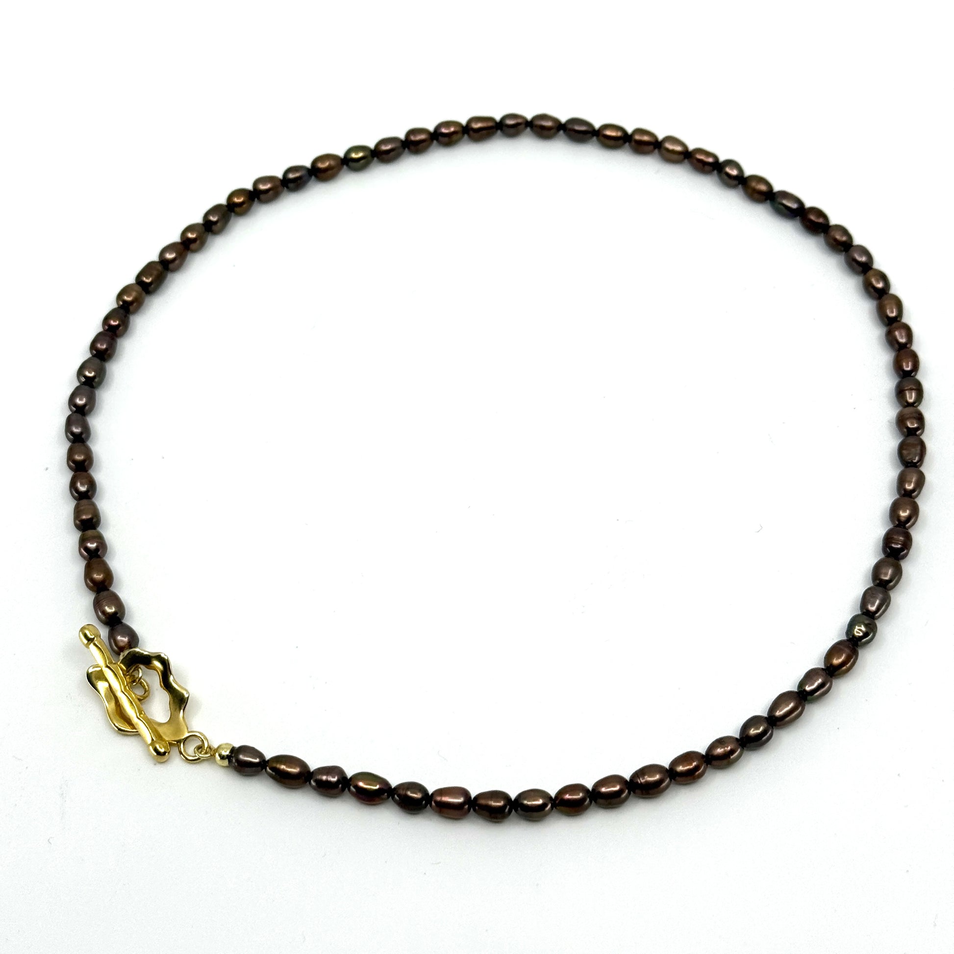 Ketting met bruine parel gecombineerd met vergulde sluiting