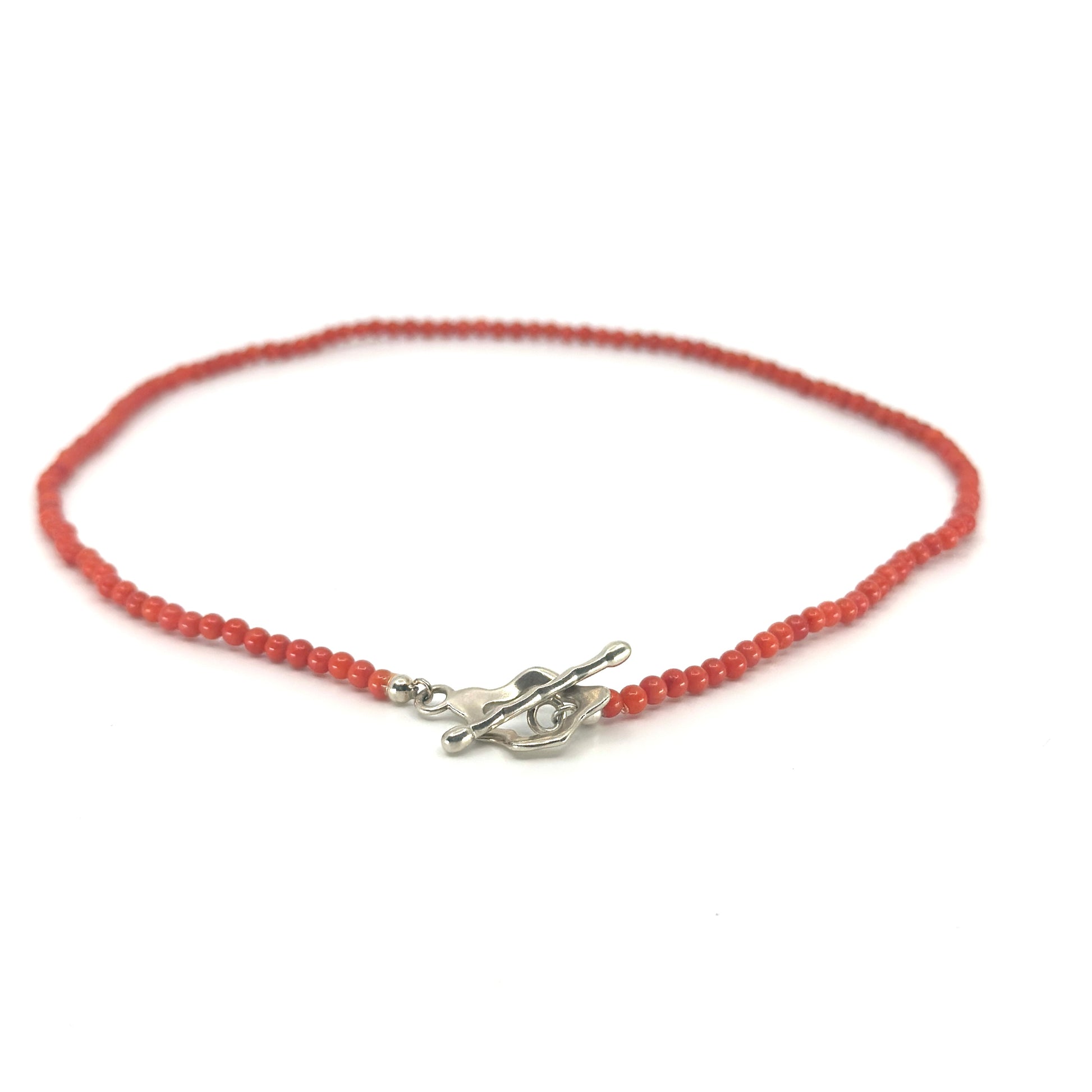 Koraal mag niet ontbreken in de Ocean Collection. Dit kortte model ketting is 45cm lang. De ketting heeft de door mij ontworpen zilveren organische vorm sluiting wat deze ketting uniek maakt.
