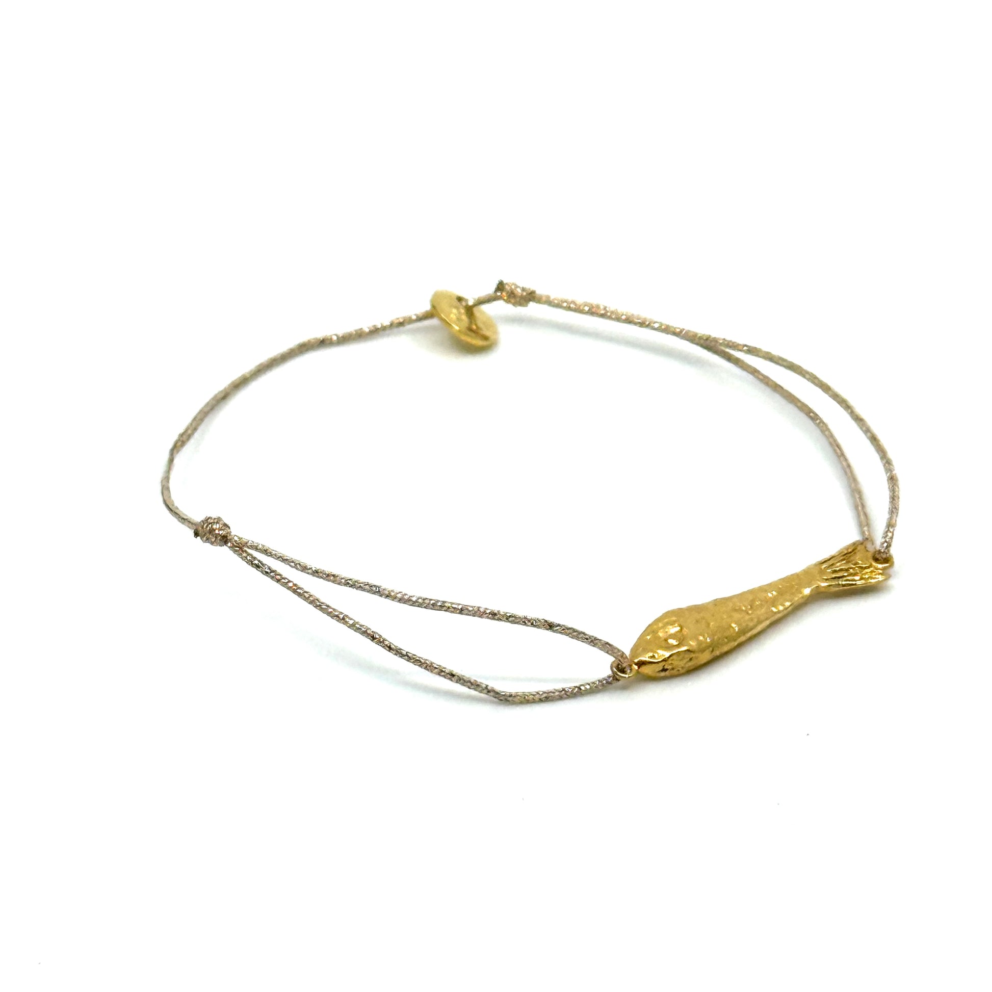 Lief klein verguld sardientje uit atelier in Frankrijk.